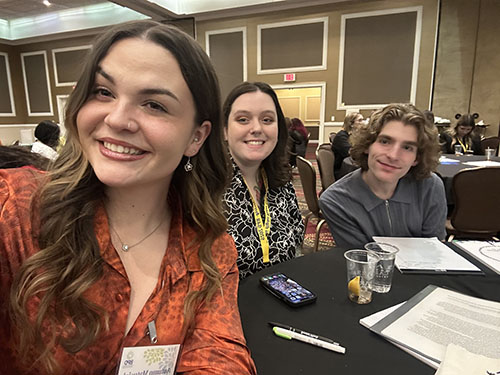 B.S.W. students Joseph Kniceley, Autumn Matusiak and Julia Stodard presented a poster, "Student-Led Volunteering: How Social Work Students Can Benefit from Out-of-Classroom Experiences," at the Association of Baccalaureate Social Work Program Directors Conference in spring 2025. Co-authors were Elena Diaz and Dija Ndiaye. A yearlong community service initiative was the basis for their research project.