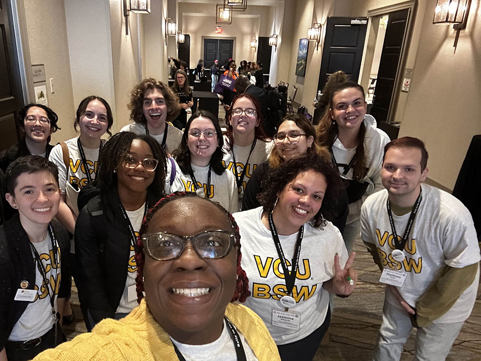 14 B.S.W. students and 9 faculty and staff attended Rally in the Valley in spring 2025 at James Madison University with 13 other schools of social work from the commonwealth. The Virginia Social Work Education Consortium sponsors the annual undergraduate mini-conference.